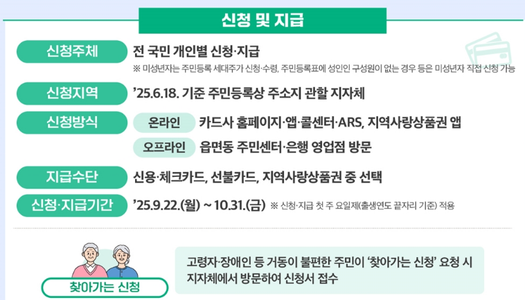 - 오프라인: 카드사 연계 은행 영업점, 읍면동 주민센터
