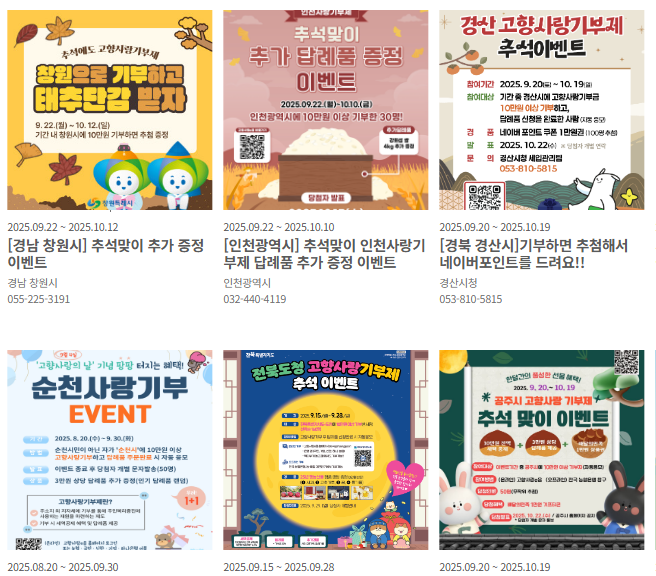 - 부산: 기부자 대상 추첨 이벤트로 지역 특산품 증정