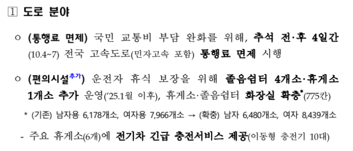 추석 연휴 고속도로 통행료 면제 범위