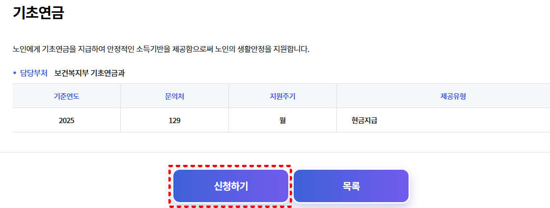 - 기초연금 수급 조건을 충족해야 함 (소득인정액 기준 등)