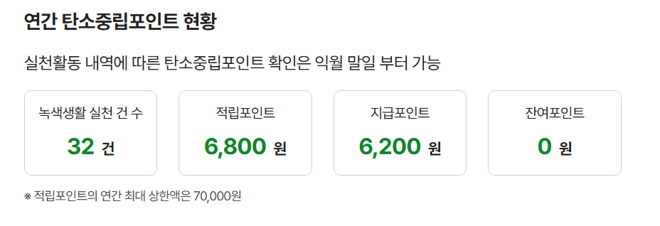 | 친환경제품 구매 | 1,000원 / 건 | 환경표지 인증 제품 구매 후 영수증 업로드 또는 연동 필요 |