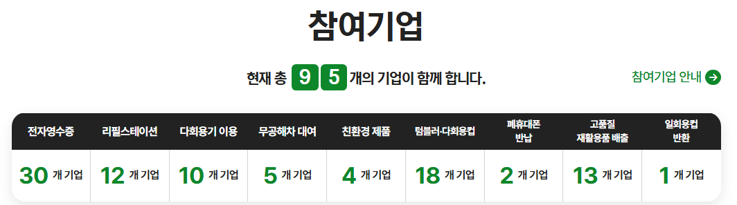 - 참여 방법: 일회용컵 보증금 참여 매장에서 일회용컵을 반환합니다.