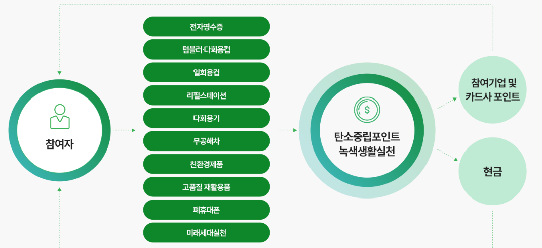 - 참여 방법: 커피전문점 등에서 일회용컵 대신 텀블러나 다회용컵을 사용합니다.