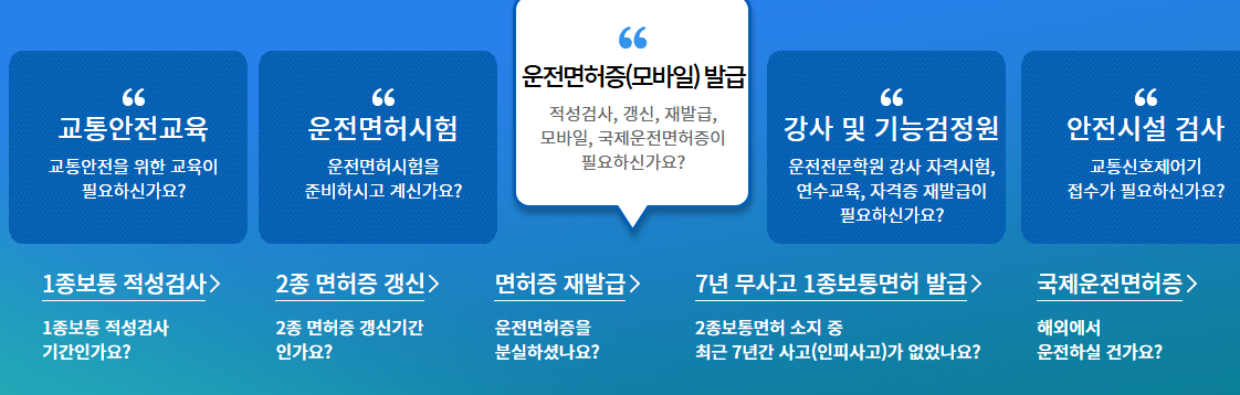사이트는 단순한 신청 플랫폼을 넘어, 운전면허의 전 주기를 관리하고, 국내외 운전에 필요한 증명서 발급부터 교통안전교육 예약, 모바일 운전면허증 발급까지 폭넓은 서비스를 제공합니다.