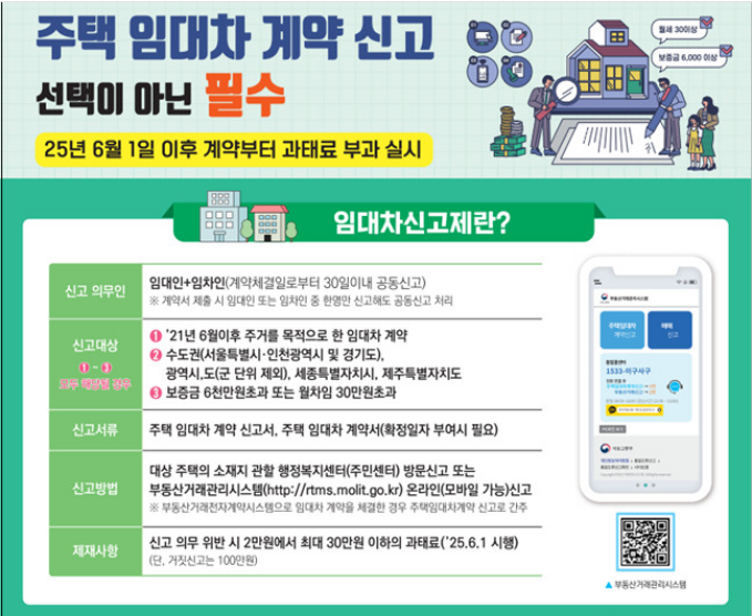 2025년 6월 1일부터 주택 임대차계약 체결 후 30일 이내에 지자체에 의무적으로 신고해야 하는 '전월세 신고제'가 본격적으로 시행됩니다.