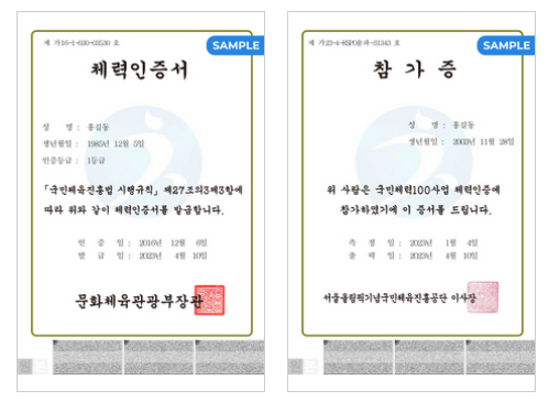 체력인증서 발급