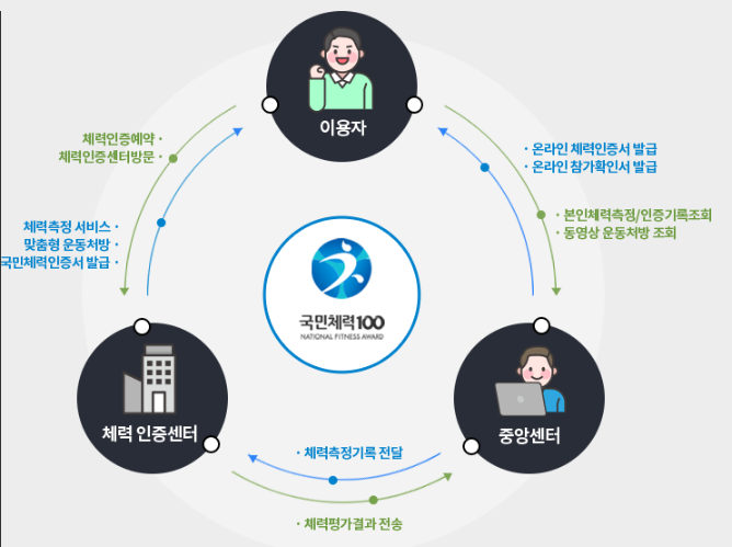 국민체력100 인증센터는 문화체육관광부와 국민체육진흥공단이 공동으로 운영하는 국가 공인 체력관리 플랫폼입니다. 이 프로그램의 핵심은 단순한 운동 권장이 아닌 데이터 기반의 체력 측정 → 개인별 맞춤 운동지도 → 지속적인 사후 관리로 이어지는 종합 건강관리 체계입니다.