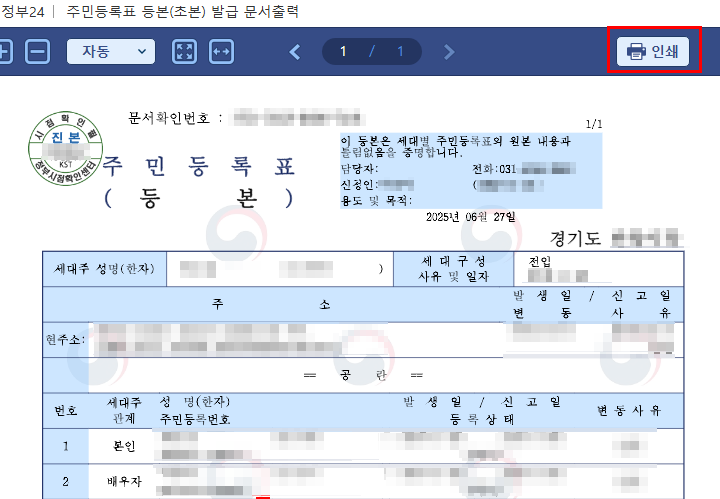 본인 출력: 정부24 홈페이지에서 주민등록등본 발급받는 방법