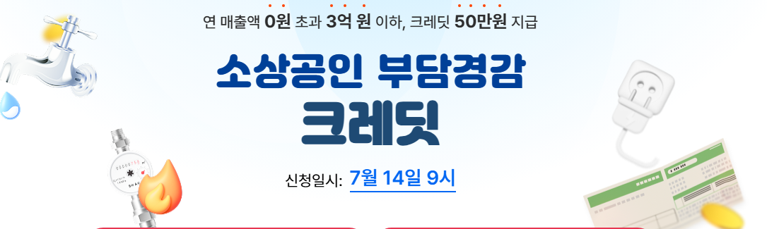 ‘소상공인 부담경감 크레딧’은 정부가 2024년부터 2025년까지 시행하는 공공지원 사업으로, 연매출 3억 원 이하 소상공인이 전기요금, 가스요금, 수도요금 및 4대 공공요금료(사업주 본인 부담분 포함)를 납부할 수 있도록 최대 50만 원까지 디지털 포인트 형태로 지원하는 제도입니다.