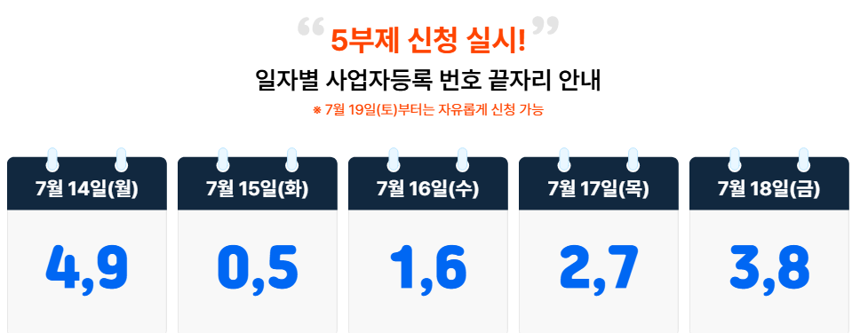 2025년 개업자의 경우, 상반기 매출신고 마감일(7월 25일) 이후에 신청이 가능하도록 별도 신청시기가 설정되어 있습니다. 신청은 모두 온라인으로만 가능합니다.