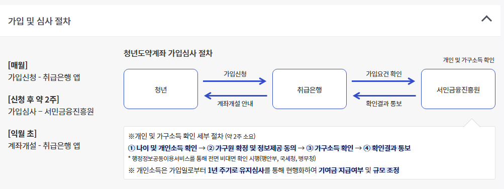 - 취급은행 앱 또는 홈페이지에서 ‘청년도약계좌’ 메뉴 클릭