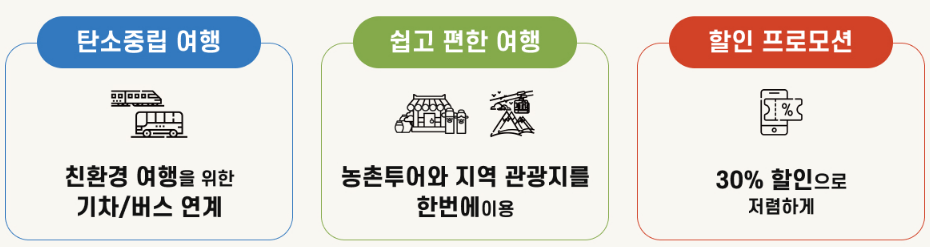농촌투어패스의 핵심 혜택 중 하나는 바로 대중교통 연계 할인입니다. 특히 인구소멸지역을 대상으로 할 경우, 교통비 할인 폭이 상당히 큽니다.