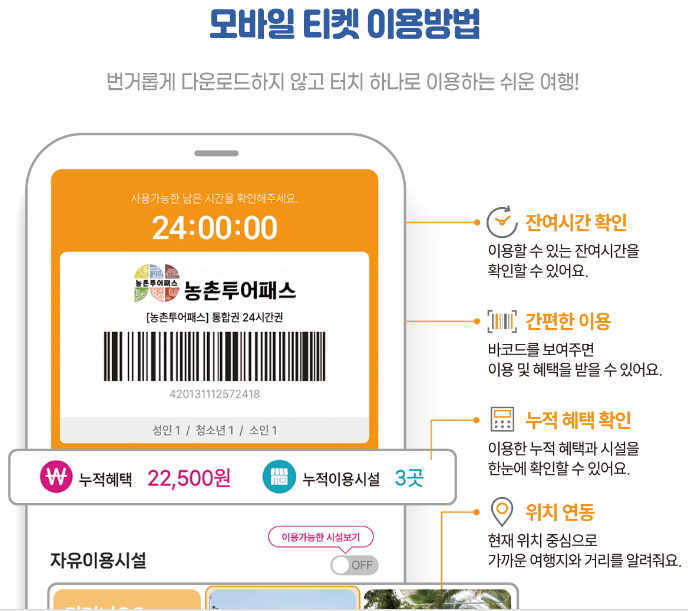 농촌투어패스는 단순히 교통비 절감에 그치지 않고, 지역에서 제공하는 다양한 체험 콘텐츠와 결합되어 있어 다양한 유형의 여행객에게 추천됩니다.