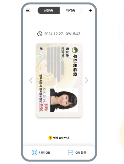 - ‘모바일 신분증’ 앱 설치 후 QR코드 촬영