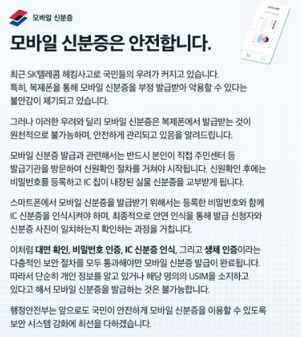 - 발급 대상: 주민등록증을 이미 발급받은 17세 이상 국민 중 모바일 발급을 원하는 자