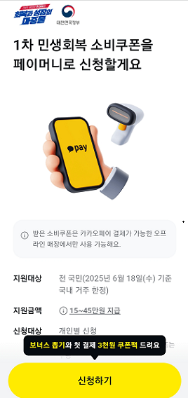 카카오페이로 신청 가능한 민생회복 소비쿠폰