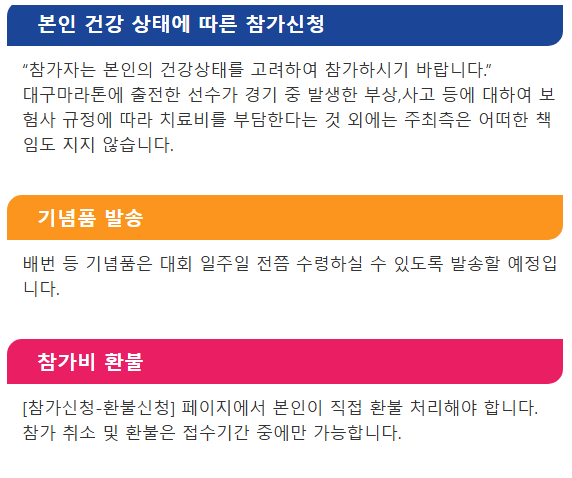 2026 대구마라톤은 단순한 달리기 대회를 넘어, 참가자들에게 건강과 도전 정신, 그리고 지역의 활기를 함께 느낄 수 있는 특별한 행사입니다. 지금부터 충분히 준비해 두신다면, 대회 당일 자신만의 값진 성취와 잊지 못할 추억을 만들 수 있을 것입니다.